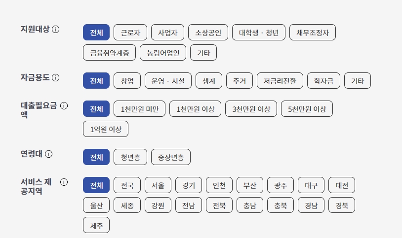 내게 맞는 조건을 설벙 후 검색을 하면 맞춤 대출 종류을 확인 가능합니다.